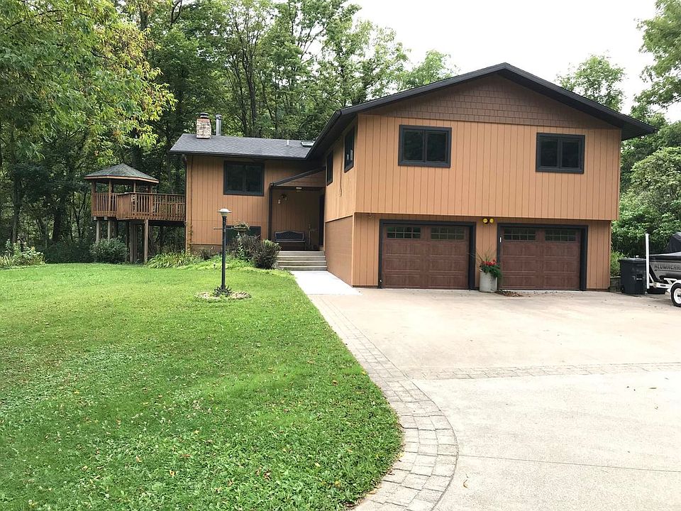 Wow! Priced way below bank appraisal! You will love all the updates to this terrific home. Updated bathrooms, windows and kitchen. Quartz counters in this well appointed kitchen. New carpet in master bedroom. Wood burning fireplace to stay toasty warm this fall and winter. Enjoy the huge deck with covered gazebo and hot tub. Stainless steel grill also stays....so use hot tub and grill easily all year. Listen to the water running in the creek down the hill past this lot.Lower level walk out with rec room, half bath and office. Heated garage. Home warranty included. New septic system being installed prior to closing. One of the best lots in Brookwood addn. Hurry and check out this great home and spend the holidays in a country setting.....yet close to La Crescent and Lax.