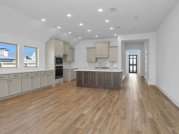 READY FOR MOVE-IN! Extended entryway with 12-foot ceilings. Game room with French doors frame the entry. Spacious family room with a wall of windows. Open kitchen offers a 5-burner gas cooktop, an island with built-in seating space and a corner walk-in pantry. Primary suite with a wall of windows. Dual vanities, freestanding tub, separate glass enclosed shower and two walk-in closets in the primary bath. Guest suite just off the extended entry with a full bathroom and walk-in closet. Secondary bedrooms with walk-in closets. Utility room with private access to the primary bathroom. Extended covered backyard patio. Mud room just off the two-car garage.