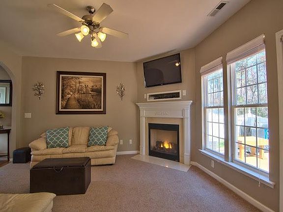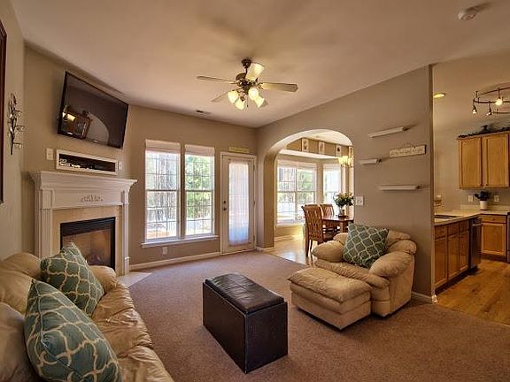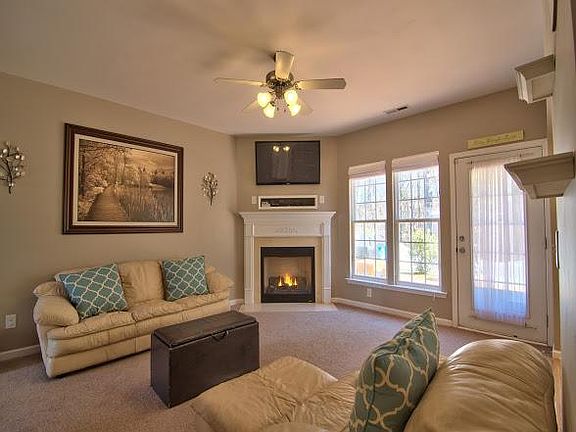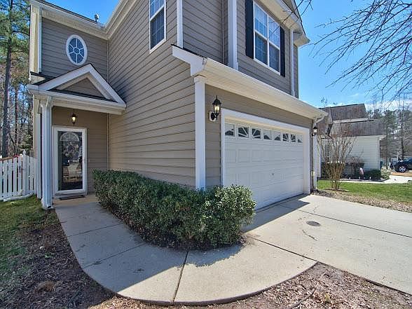 Charming and well maintained detached single family home in popular South Durham. Just under 2000 sq ft., 3 bedrooms, 2.5 baths. Located in Copper Creek subdivision and is part of the adjoining Auburn pool community. Minutes to The Streets at Southpoint Mall, routes I40 and 147, as well as RTP. Just 10 minutes to Duke and downtown Durham and 15 minutes to UNC. Open floor plan that includes new carpet in first floor family room, gas fireplace, hardwoods in kitchen and dining area, stainless steel appliances and amazing master suite with vaulted ceilings, separate his and her walk-in closets as well as dual sinks, garden tub and separate shower in master bathroom. Laundry room on second floor (washer and dryer included), 2-car garage, patio in private back yard and access to community pool. Home backs to a wooded buffer and is fully fenced in. Neighborhood is highly desirable and family friendly. Pets are permitted. Available in April. $1,800/month. Renter pays utilities. Landscape management negotiable.