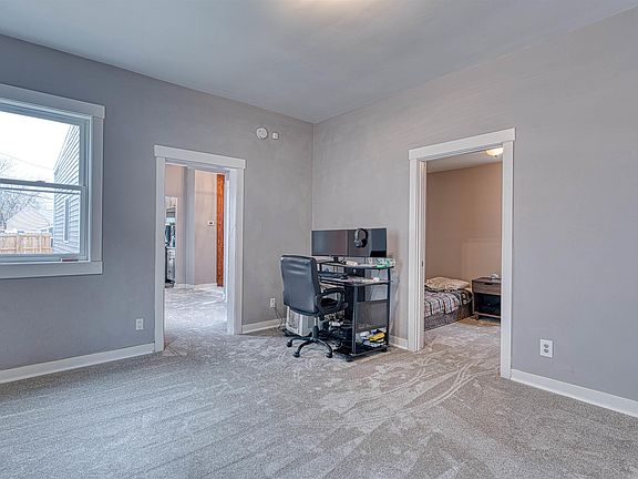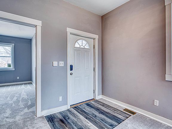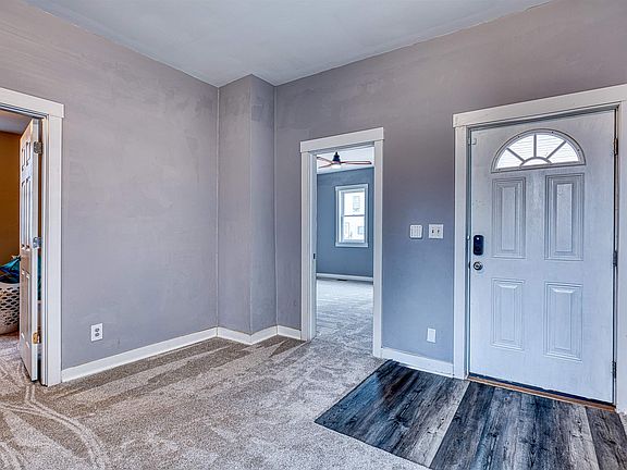 Welcome to this move-in-ready west side home! This home maintains the charm of another time with many classic features such as the solid wood doors and tall ceilings while boasting many modern updates. The front room on the main floor has its own closet and could be used as a fourth bedroom. The upstairs bedroom and bathroom can function as a very private owner's suite. Many of the updates were made in 2022 including windows, flooring, and an updated kitchen. Carpets were just redone in several rooms in February 2025. Don't miss out on this gem located conveniently near shopping and night life on the west side of Evansville.