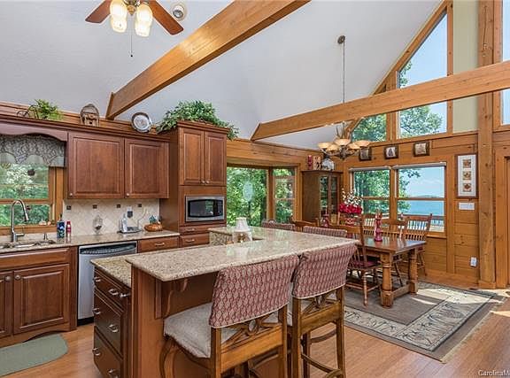 3 bedroom/ 3 full bath Gateway Mountain Log Home now available for sale with unending Lake Lure Views!! Beautifully finished home includes over 7 acres with two additional home sites should you want to move your family and friends with you or you can sell one or both which would leave you with 2.25 acres and the home. Paved road frontage for easy access. Great room offers strand bamboo flooring, fireplace and cathedral ceilings with views in all directions. Wrap around porch. Master bedroom offers its own master bathroom featuring a Bain Ultra massage therapy tub. Large closets. Spacious main kitchen offers custom cherry cabinets, dual range and granite. Ceiling double insulated. Garage and work shop. Amazing outdoor fire pit and sitting area perfect for relaxing the day away! Would make an excellent addition to our rental property inventory as it would easily pay for itself. Just minutes to Black Mountain, Lake Lure, Lake James, Asheville, Charlotte.