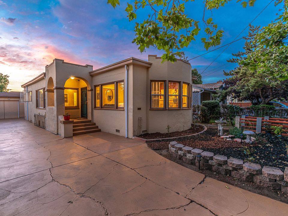 Charming 1924 Historic Havenscourt Boulevard Bungalow:Beautiful and Affordable!! SEWER LATERAL COMPLIANT--QUALIFIES FOR 3.14 INTEREST RATE 30 YRS W/ 20% DOWN. OR Renovation Loan 3.5% down-GET $$$ TO PURCHASE AND MONEY TO IMPROVE!!! Behind the original turquoise door you will find to your delight..... a Light-filled, living room where a lovely Bay Window and Cheerful fireplace welcome you in! Around the corner you'll discover the formal dining-room with that Old-world feel of lovely built-ins: cabinet with drawers and back mirror.OVER-SIZED EAT-IN KITCHEN: Ample storage, Breakfast bar, and more cabinets and counter space you could ever dream of! Handy laundry room adjacent w/sink and storage. off the hall lies 2 ample bedrooms and freshly remodeled bath. another bedroom has connecting 1/2 bath w/ storage. Beautiful wood/tile laminate throughout.Convenient location for commute: either 880 or 580. Come discover Palm tree lined, extra wide, historic Havenscourt Boulevard.