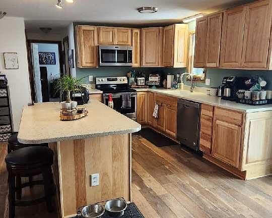 - Description: Quartz countertops, new appliances, solid wood cab