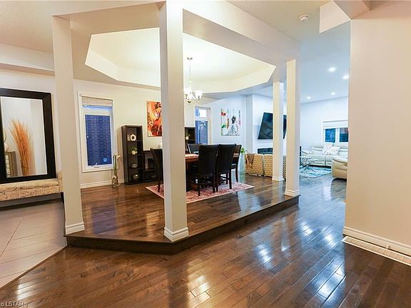 Impressive ~ 2830 sq. ft. 4+2-bedroom five-bathroom, executive home w/finished lower level in Riverbend area steps from nature trails through Kains Woods along the river. Timeless stone exterior, stucco accents, Spacious floor plan & windows allow for seamless flow & an abundance of natural light. The heart of the home unfolds in the open-concept kitchen/living room. The gourmet kitchen features granite counters, espresso cabinetry, stainless appliances, and a center island; the Kitchen opens into the oversized family room, showcasing a beautiful fireplace. Ascend the 2nd floor to 4 bedrooms including a sizeable primary suite w/ tray ceiling, 5-piece ensuite w/separate shower, soaker tub & double sinks, walk-in closet & large sunlit windows. Finished two bed, one bath, full kitchen, the lower level boasts a convenient separate entrance that helps with the mortgage. Step outside to your private retreat in the fully fenced backyard. Thoughtful hardscaping & landscaping offer a low-maintenance backyard experience so you can relax and enjoy the River Bend area by the surroundings of Riverbend Park, schools, playgrounds, shopping, Golf & restaurants within walking distance. Welcome Home.