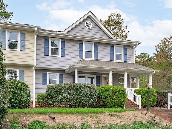 A townhome that lives like a spacious home in a prime North Raleigh location! Enjoy the unique combination of a rocking chair front porch and a private backyard with deck that is completely fenced-in. Interior highlights include: eat-in kitchen; large great room for living and dining; HUGE primary suite with walk-in closet and ensuite bathroom; two ample-sized secondary bedrooms; and fun, character features like a laundry chute and built-in storage nooks. Community amenities of pool, tennis, and clubhouse. Conveniently located near popular shops, restaurants, and anywhere you want to get in Raleigh.