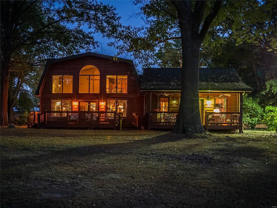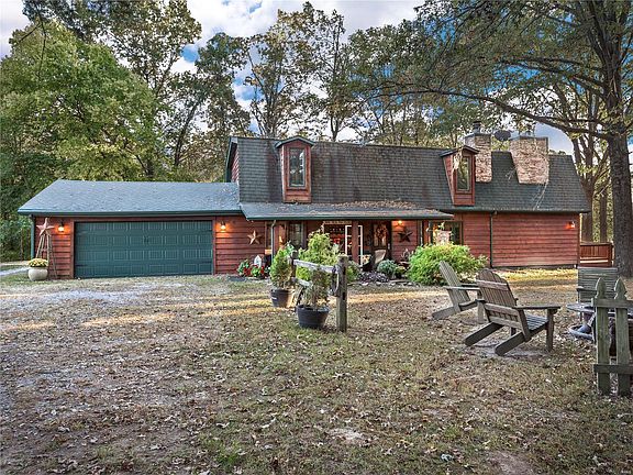 Showings begin on 4/16! Take this private drive to your little piece of heaven on 7 acres and a BEAUTIFUL view/access to Governor Bond Lake! This home welcomes you into an open living room/dining combo that leads you to an addition that was added 11 years ago. The addition has a great room wood burning FP and a HUGE master bedroom with a luxurious master bath. There is another 1/2 bath and bedroom on the main floor. Upstairs, you have 2 additional bedrooms, a full bath, and a room that overlooks the great room with stunning views of the lake. It has a closet and can be used as a bedroom, office, or den. Porches are all around to sit and enjoy the fresh air and view with complete privacy. Horses are an option here. There is a 40x60 barn with a corral and birthing room. This barn has a room 29x23 that was used as a gathering place/room, it has a gas line if you want to add an FP. If you want horses, a barn, privacy, a view of the lake, access, and a dock, this perfect spot for you!