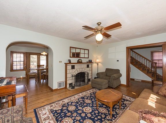 Charming 2 story home in ever popular Riverside neighborhood. Wood entry. Gracious living room features wood floors & wood burning fireplace. Fully applianced updated kitchen with pantry. Formal dining room includes wood floors, wood blinds & doors leading out to deck. Upper level features a huge 26x12 master bedroom includes a large sitting area or nursery & California closet, full bath & spacious 2nd bedroom. Basement features a large family room, spacious laundry room (washer & dryer included) & storage area. Newer composite deck, fenced yard, 2 car over sized detached garage with large workshop area. 1 year home warranty provided. Fabulous neighborhood! All info deemed reliable but not guaranteed.