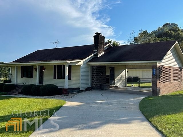 This well-maintained 3 bedroom, 2 bathroom residence is built in 1976, situated on 2.0 beautiful acres, located on the west side of Upson County, Thomaston, Georgia. The home offers a rocking chair front porch, hardwood floors in common areas, an open and upgraded kitchen with breakfast bar, Corian countertops, and custom cabinets. There is a masonry fireplace in the living room with gas logs and an attached space heater in the kitchen for the cool winter days. The home also features central electric air and heat, natural gas hot water heater, and dryer. It has a gorgeous corner lot, with double carport and a large, 24' x 32' detached workshop with electricity. The fenced backyard, with dog run, offers plenty of room for gardening and kids' outdoor playset. The water heater was replaced in 2020 and there is newer a/c ductwork throughout the residence. The price has been improved.