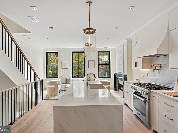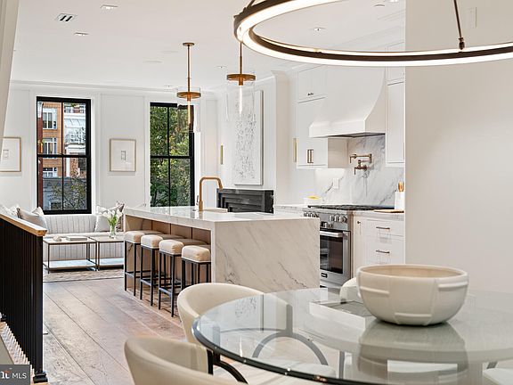 Representing the pinnacle of new construction luxury at 1427 Q Street NW, the Penthouse Residence stands above all else. A generous three-bedroom, two-and-a-half-bathroom floor plan spanning 2,024 square feet of living space features a list of amenities comprising top-shelf finishes and exacting craftsmanship. High ceilings, white oak floors, and extensive custom millwork establish a contemporary, ethereal ambiance while evoking the ethos of the home’s resplendent 1880 roots. In the main living area, a marble-clad gas inset fireplace sets the tone for an inviting space, enhanced by Restoration Hardware fixtures and natural light streaming in from Anderson Windows. At the heart of the home, the kitchen’s Miele appliances and Brizo faucets are nestled within only the finest cabinetry, consolidating to create an aesthetically mesmerizing yet functionally ideal chef’s dream. This level of finish continues into the primary suite, whose ample closet has boundless opportunities for customization. The primary bath features a marble sink to match the fireplace outside, Brizo faucets, Restoration Hardware light fixtures, and radiant heated floors to procure a sumptuous experience. All bathrooms are clad in sleek porcelain tile and finished to the highest standards. Ascending the stairs reveals a wet bar area with a built-in coffee machine, ice maker, and wine fridge. This area opens up to what is undoubtedly the home’s pièce de résistance: a private rooftop terrace that can be opened up to facilitate true indoor/outdoor entertaining. A built-in gas grill and hot tub transform the space into one of the city’s most exclusive places to lounge and gather after sunset. Built-in Sonos speakers, twin washers and dryers, and an assigned, 2 secure parking spaces complete this prime offering. Virtually unsurpassable in its location, 1427 Q Street is situated between Dupont and Logan circles in the heart of Washington’s most vibrant area. Half a block from the bustling 14th Street Corridor, the home is within walking distance to Whole Foods, Le Diplomate, and nightlife. Showcasing the very best in terms of quality, amenities, and locale, the Penthouse Residence at 1427 Q Street NW is city living at its peak.