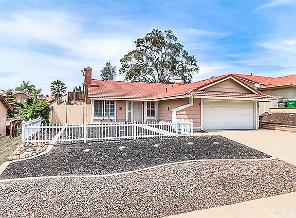 This lovely home has been well maintained over the years. This 3 bedroom, 2 bath, 1,336 square foot home is comfortable, light & airy. The living room features shutters, laminate wood flooring, and a cozy gas fireplace with granite facing. The large open kitchen has been completely remodeled to include a custom tile backsplash & countertops, stainless steel sink, plenty of cabinet & counter space, a custom tile floor design, and window shutters. The home has central air, new Lennox furnace, double pane windows, upgraded bathrooms with stone & tile flooring, ceiling fans in every room, mirrored closet doors in all bedrooms. The spacious master bedroom has two mirrored closets and a high ceiling. The large master bath includes two vanities & sinks, and two wood trimmed wall mirrors. All 3-entry doors have Security Screen Doors allowing the wood doors to remain open for a flow of fresh air throughout the house. A special addition for animal lovers; the dogie door is on the side of the house and opens to an outside chain link tent - a great outside location for the litter box or to simply protect small animals from hawks. This home is located in the desired Corona/Norco school district, close to the Cresta Verde Golf Course, freeway, shopping, and restaurants.