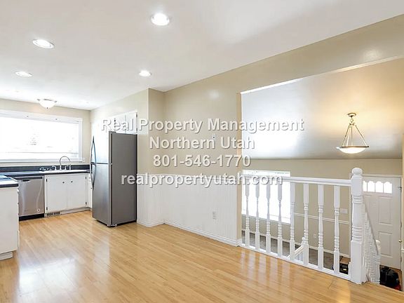 Beautiful 4 Bedroom 2 Bath Home located in the charming city of Kaysville, UT, known for its friendly community and picturesque surroundings. Through the front door you'll find the living room with a large window facing the front yard and a fireplace. From here you can walk up the steps to the dining area and kitchen with appliances included. You'll find ample space in all four bedrooms. This home has an attached 2 car garage, laundry room with washer & dryer hookups, plus a large fenced in backyard where you can enjoy the outdoors.
