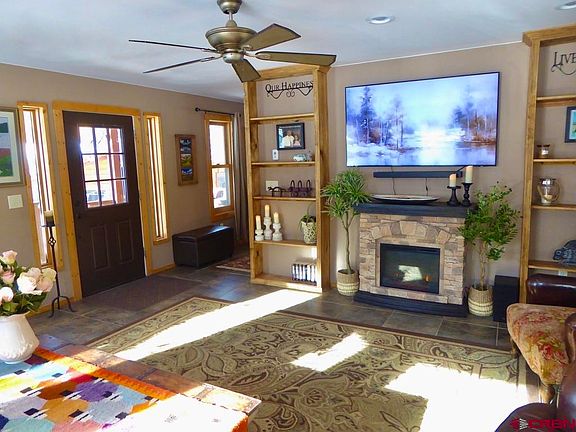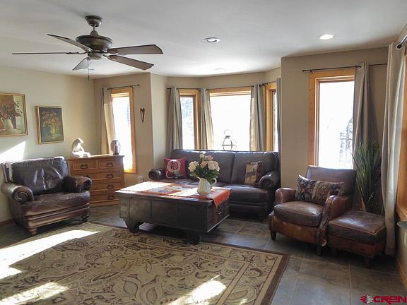 Beautiful finishes are found throughout this custom-built Silverton home. Featuring gorgeous stone floors with cozy in-floor heat, incredible views, a large soaking tub, high-end fixtures, solid wood doors, and an enormous master suite on the second level. The spacious, heated, basement has 9' ceilings and is stubbed out with plumbing, giving it flexibility to be additional living space. There is a photovoltaic-solar roof system that zeros out the electric bills most months. The beautiful furnishings are included (with a couple of exceptions). In a great, quiet, desirable, neighborhood, backed against Anvil Mountain. There are amazing hiking trails out of the door and it is within walking distance of the Business District. THERE IS CURRENTLY ONE VACATION RENTAL PERMIT AVAILABLE FOR THIS ZONE, ALLOWING THE POSSIBILITY TO RENT THE HOME SHORT TERM, SUCH AS AIRBNB. A home of this caliber is a rare find in Silverton.