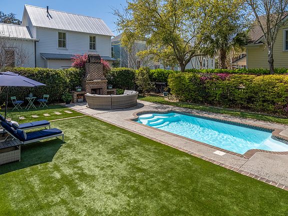 Welcome to 1427 Wando View -Where indoor and outdoor living meet. This stunning Charleston single LIVES LARGE and offers the perfect blend of comfort, style, and functionality. Nestled in the heart of Smythe Park, you'll be just steps from Daniel Island School, Smythe Lake, Pirate Park, and Walking Trails. The primary suite on the main floor features a newly renovated bathroom with an oversized shower and separate walk-in custom closets. Upstairs, a spacious flex area awaits--ideal as a second living room, playroom, or gaming space--along with three generously sized bedrooms and two full baths. Step outside into a backyard paradise designed for year-round living. Enjoy your heated saltwater pool winter, spring, summer and fall. Framed by lush landscaping your outdoor living spaceis perfect for sun-soaked afternoons. As the sun sets, gather around the stunning brick wood-burning fireplace, where cozy evenings with friends and loved ones come to life whether you're roasting marshmallows, enjoying a glass of wine, or hosting unforgettable gatherings. Watch your favorite sporting event or show in the covered patio while others play ping-pong, swim or shoot hoops in the driveway! Don't miss your chance to make it yours! Schedule your tour today, truly a must see!