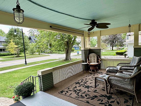 You will love the character and quality throughout - it is a must see! The foyer welcomes you with its stunning open staircase. The living room boasts a fireplace, built-ins and a charming window seat. Pocket doors grace the foyer, living room, and dining room. The updated kitchen showcases an island, Corian countertops, stainless steel appliances, wine refrigerator, and tile flooring. Just off the rear enclosed porch, a convenient laundry/drop zone area awaits, complemented by a charming half bathroom on the same level. The second floor offers 3 large bedrooms, a modernized 3/4 bathroom, a walk-in hallway closet and an enclosed porch/sunroom. The attic has been transformed into a versatile family room or bonus space. The beautifully landscaped yard can be enjoyed from the open front porch or large rear deck. Over time, updates include boiler, plumbing, wiring, and sewer. There is an oversized 2 car garage with a turn-around area to the rear of the home.