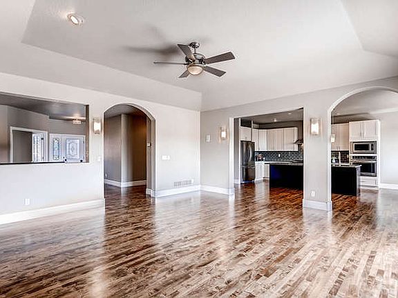 Contemporary, upscale, open, RANCH backing to pond & open space with fab mtn. views! Stunningly remodeled in 2015. Gourmet kitchen with SS appliances, custom cabs, slab granite. Luxury master ste. with jetted tub, walk-in shower and 2 closets. Finished basement with rec room & wet bar, theatre room, 2 bdrms, 3/4 bath. "Smart House" controlled with app. Main level laundry, oversize 3 car garage. 2 furnaces/2 H2o heaters, humidifier. Oppt. pool membership.