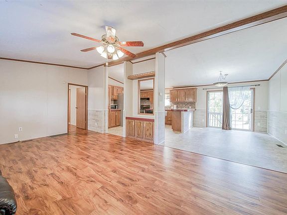 Charming Abode on 5+ acres of private, country living! This home is nestled in among mature trees and backs to woods. The living room greets you with beautiful flooring that spans throughout, vaulted ceilings, and effortlessly flows into the dining room. The dining room has sliding glass doors that lead to the back deck and shares the breakfast bar overlooking the kitchen. The kitchen has plentiful cabinets and walks back to the laundry area. The laundry area provides quick access to the master bedroom suite with vaulted ceilings, double closets, soaking tub, and separate shower. The master bedroom suite can also be accessed through the living room. This home has two additional guest bedrooms and a full bathroom. Enjoy your time on the multiple deck/patio areas or spend some time on your hobbies and projects in the spacious detached garage. This space is also great for your additional storage needs! Schedule your private showing today!