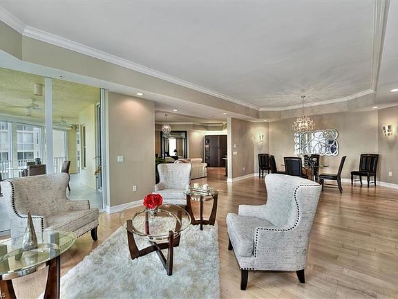 Live in this spacious 4 bedroom 4.5 bathroom apartment in The Paramount building at Gulf Harbour Yacht & Country Club and enjoy the very best of waterfront living. To enter this apartment travel up an elevator that opens to your own private foyer. Upon entrance you will find a separate formal dining area and a wet bar, which makes for a great entertaining area. The master bedroom boasts two enormous walk-in closets and a spa-like bathroom. One of the additional bedrooms could double as a library with enough built-ins for the most voracious of readers. Enjoy a beautiful Southwest Florida sunset on one of the two roomy outdoor living spaces with views overlooking the Caloosahatchee River and the Gulf Harbour Marina(each with electric storm shutters). The kitchen features European cabinets with pull out shelves and drawers, granite countertops and stainless steel appliances. Included are two deeded parking spaces and a separate room for storage. The Paramount building features an array of amenities including; a private gym, community room, private pool and beach access. The building is completely secure behind both a manned gate house and an electric gate.