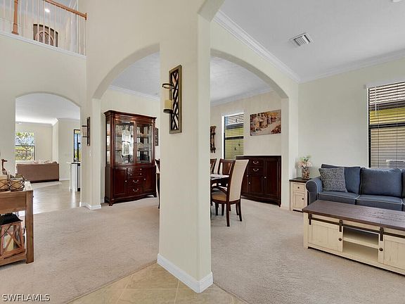 **Price Improvement** Welcome to Portico, surrounded by lakes and marshes this gated community is just a short drive to Downtown Fort Myers. This 2 story home offers a desirable layout with 5 spacious bedrooms, 3 full bathrooms, bonus room and a loft . This home is great for entertaining with its open floor plan, large living spaces and formal dining area. The kitchen has modern upgrades including white custom cabinets, stainless steel appliances and a beautiful backsplash. The home also features a laundry room with shelving, 3 car garage, and lush Florida landscaping. Outside you will find a screened in lanai and a large backyard with a playground and room for a pool! Other amenities in the neighborhood include resort style swimming pool, fitness center, community playground, full size tennis courts, basketball courts, pickleball and more. Seller is motivated so schedule a showing today!