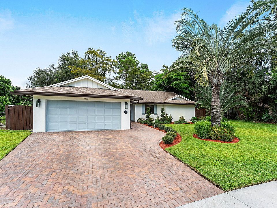 This charming 3/2 home plus Den with covered back porch under AC, located in the peaceful, no-HOA community of Sugar Pond Manor in Wellington, FL is ideal for anyone looking for a spacious, functional home with plenty of character. The home features a 2021 roof, 2023 appliances among other upgrades. The Den offers flexibility for use as a home office, playroom, or guest room. The inviting interior features Spanish tile flooring and farmhouse-style touches that give it a cozy, rustic feel. The open layout is perfect for easy living, with a seamless flow between the living, dining, and kitchen areas. Step outside and enjoy the spacious, fenced yard, shaded by mature trees, and a paved patio creating a private oasis for relaxation or play. Minutes from top-rated schools, dining & shopping. Roof - 2021