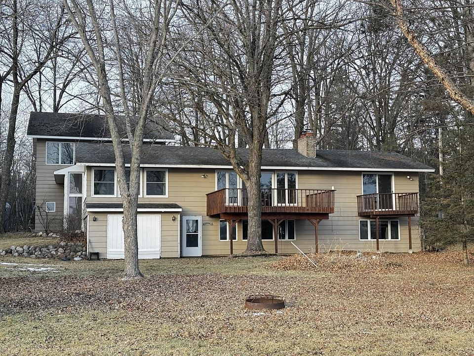 Welcome to this spacious and light-filled yearly cabin on Bay Lake. This comfortable and peaceful cabin, situated on a level 1.8 acre wooded lot, is right in the heart of Lake Country. Bay Lake is a premiere lake and a top destination for people wanting to enjoy all lake life has to offer. The main level has so much to offer: an open concept kitchen / dining/ living room with wood burning fireplace and deck access, a large 3 season porch, plus the primary bedroom with a private deck. Family and guests will enjoy the spacious bonus room and third bedroom above the tuck under garage. The lower level has a second bedroom, full bath with jetted tub, plus living space with a second full kitchen and family room with a wood burning fireplace and a lakeside door for easy lake access. Notice the detached 24 x 24 garage and lawn shed. Appliances included with sale. Enjoy all Bay Lake area has to offer: biking, golf, dining, fishing, and LAKE FUN! See MLS 6647998 for 100’ lot next door.