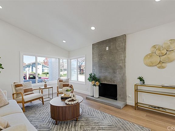 Newly remodeled Laurelwood Home with Resort-Style Amenities! COME SEE this beautifully renovated 3-bedroom, 2-bathroom home in the Laurelwood community, where modern design meets everyday convenience. Thoughtfully updated with new luxury vinyl flooring, designer light fixtures, and fresh interior and exterior paint, this home is move-in ready with a host of high-end upgrades. Step into a bright and inviting living space featuring dual-pane windows and a sliding glass door that open to a newly landscaped backyard—perfect for entertaining or unwinding in your private retreat. A stunning designer plaster fireplace anchors the living room, with high ceiling adding warmth and character. The fully remodeled kitchen boasts new two-tone cabinets with new quartz countertop, a designer tile backsplash, and brand-new appliances, including a quartz sink and garbage disposal. Each bathroom is a spa-like sanctuary, with new designer tile, a new soaking tub in the guest bath. Additional upgrades include new HVAC unit, recessed LED lighting, oversized sliding closet doors. Located in a prime Tustin location, this home offers easy access to top-rated schools, shopping, dining, entertainment, and major freeways. Residents enjoy exclusive access to a 4-acre community park, complete with a pool, playground, tennis, pickleball, and basketball courts. With its thoughtful upgrades and unbeatable location near The District and Tustin Marketplace, this home is a rare. WILL NOT LAST!
