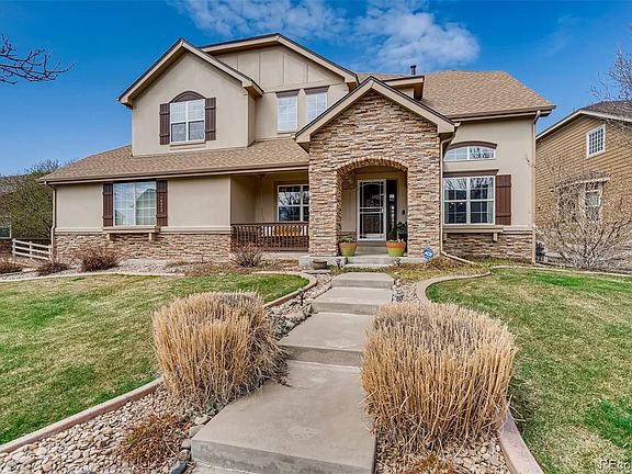 This sought after Broadlands Golf-Course Community provides a rare opportunity to purchase in this coveted neighborhood. Situated on a quiet cul-de-sac this is a perfect location and will not disappoint. The curb appeal is evident with an exquisitely maintained lawn enriched with mature trees. As you enter your new home you will be in awe of the two story entry with vaulted ceilings and dual staircase that lead you to the second level. The main level has hardwood floors throughout and an abundance of natural light. The chef's kitchen boasts extended cherry cabinets, granite countertops and stainless steel appliances. The main level office with French doors provide the privacy needed with busy work days. The master retreat located upstairs offers a 5-piece spa-like bath and generous walk-in closet. There are three additional bedrooms upstairs. One bedroom offers an en-suite bathroom and walk-in closet. The finished basement provides more living space with an expansive great room, two additional bedrooms and three quarter bath. The possibilities are endless. Use your creativity to make it your own. Enjoy the delightful Colorado climate as you entertain guests in the meticulously maintained backyard. Or create more memories as the family works together in the already constructed custom garden bed with drip system. The spacious tandem 3-car attached garage has multiple cabinets for all your storage needs The community offers many amenities: parks, playgrounds, pool, clubhouse, basketball court and an extensive trail system. *New Roof *Painted Exterior *New Garage Door *New Carpet *Pre-wired for hot tub with hot tub concrete slab poured *See additional supplements for items included or negotiable.