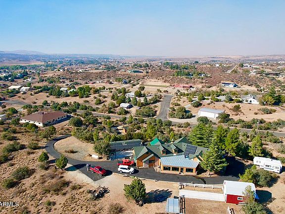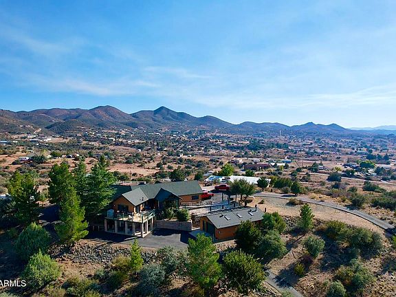Amazing hilltop country estate property in historic Dewey-Humboldt, AZ; just a few minutes to shopping and the vibrant community of Prescott, AZ. 270 degree views, spectacular sunsets; garages for all your toys, including a van garage; RV hookup; Guest or Staff quarters; HILLTOP PRIVACY; Other upgrades and features--too many to mention; indoor swim spa; owned SOLAR; Dual-pane windows; fireplaces + pellet stove; covered patios; glass enclosed sunroom porch; bathroom remodeled with separate shower and tub; upgraded kitchen; low maintenance natural landscaping