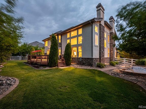 PRICE REDUCED $100,000 FOR IMMEDIATE SALE!! This Semi-Custom home in the beautiful Huntington Trails subdivision boasts over 6,000sf finished! Upon entry, the 2-story living spaces is both stunning and beautiful. Fireplaces in both the living room and family room! Luxurious spiral staircase! The kitchen is spacious and luxurious, having plenty of counter space and cabinets! The formal dining room is large enough for most 8-10 seat tables! Off the back is the spacious low-maintenance deck overlooking the professionally landscaped back yard! The main floor study/office could easily be a bedroom. The new carpet throughout the first and second floors is beautiful and comfortable! At the top of the spiral staircase is a dramatic view of the main floor that is unmatched in other homes of this price! Upstairs has 4 bedrooms and 3 full bathrooms! The master bedroom suite is palatial, having a sitting area and a fireplace in the bedroom, and the bathroom is spacious! The second bedroom has an en suite bathroom and the third and fourth bedrooms share a Jack n Jill bathroom! All secondary bedrooms are well-proportioned! The professionally finished basement adds a second family room that is perfect for entertaining with the spacious wet bar and beautiful media center! There's room for a pool table or ping pong in the finished areas, and 2 additional bedrooms with another beautiful bathroom. The garage is remarkable, with over 900sf of space, making it larger than many 4-car garages! Huntington Trails is an exquisite neighborhood that includes a private clubhouse and pool that is just a 1-2 minute walk from this house. Great Location, with The Orchard Towncentre nearby, and many other shopping and entertainment options just a few minutes away. Award winning schools, including top rated charter schools Stargate K-12 and Peak to Peak K-12 nearby! Easy access to I-25!