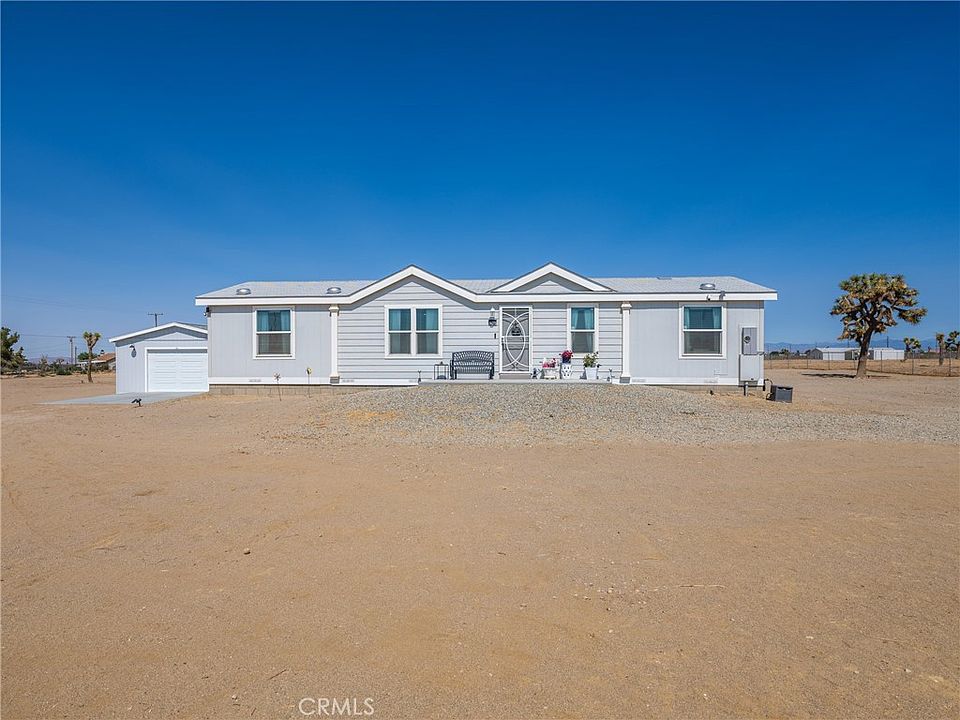 Check out 14275 Lager Rd., Better than new farmhouse style manufactured home on a permanent foundation. Spacious, open and airy interior featuring a split bedroom floor plan with the owner's suite in its own wing, featuring dual sinks and a step-in shower. Main living area offers a vaulted ceiling, dining space, plus a breakfast bar for more casual eating. Inside laundry room with exit door to rear yard. All secondary bedrooms are near hall bath and offer ample closet space. 2+ acre lot is fully fenced and sits on a corner lot, allowing for possible additional driveway to rear yard. 2 car detached garage, plus 2 sheds (one 10X16, one 8X10). Lot is level and cleared, a blank canvas with unlimited possibilities-add an ADU, bring your horses and farm animals, bring your RV and toys--or ???. 50 Amp plug is already installed for your electric vehicle or RV. A short hop will get you to paved Palmdale Rd. And let's not forget the sought after Snowline Shool Distrist, low taxes and no HOA or land lease payments! A total package just waiting for you!