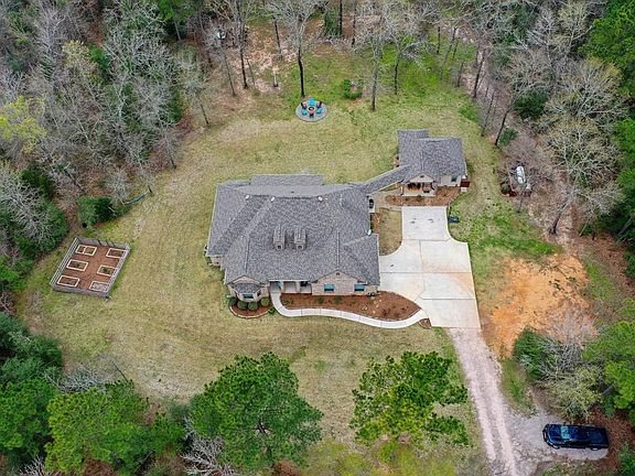 Peaceful country living is calling you to this private, fully fenced, 8+ acre oasis that features a meticulously designed, energy-efficient 1-story main home AND a 500 sqft, 1/1 guest home (NOT included in the stated sq ftg). The 4/3/2 main home has UPGRADES galore! Covered front & rear patios, wide-plank wood floors, tile in the wet areas, crown molding, dbl-pane windows, granite counters, upgraded double ovens, full-extension drawers, extra exterior lighting, ceiling fans, extra insulation (including the garage). Recent roof, 50-gal water heaters, heavy-duty water softener system, invsbl dog fence, camera system, enclosed, irrigated veg garden w/raised beds, a chicken coop & house, site-built barn pad. Guest home boasts a full, eat-in kitchen, chef's desk, living area, bdrm, full bath & a huge walk-in closet! Separate 40-gal water heater & HVAC. 750-gal ovrszd septic system, RV hook-ups, generator-ready, deer feeder, bow stand at very rear of property. Exemplary Montgomery. schools!