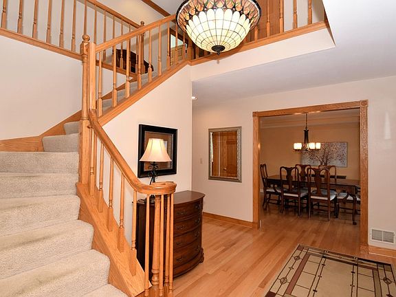 Meticulous 4 bedroom home. Two story foyer. Front living room w/classic white woodwork and GFP. Formal dining rm with tiered ceiling, HWF's & could be converted into an office. Open concept kitchen w/center island, breakfast bar, loads of cabinet / prep space, HWF's and SS appliances. Kitchen overlooks family rm and eat in dinette. Beautiful dinette space boasts buffet area w/built in cabinets,HWF's, cathedral ceilings and wall to wall windows. Main floor laundry/mud rm. Home has beautiful natural light. 4 good sized bedrms. Master suite w/WIC and brand new remodeled stunning bathroom! Bonus space in upstairs could serve as additional storage or closet space. Potential bonus room over garage. Trek deck overlooks fabulous yard. 3.5 car garage and updated mechanicals!