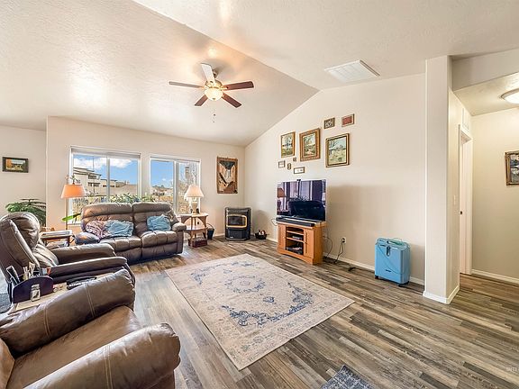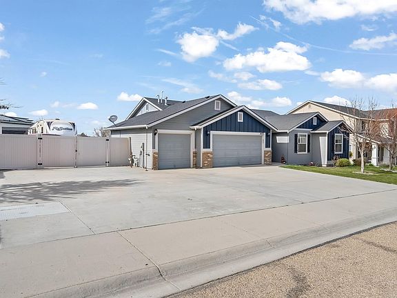 Nestled within the Quail Ridge community, this charming home exudes curb appeal with its well-maintained exterior and mature landscaping! Discover vaulted ceilings in the that accentuate the bright and open living area, complemented by luxurious LVP flooring throughout. The kitchen boasts stainless appliances, while the main ensuite offers convenience with a dual vanity and a spacious walk-in closet. Practical features like a tankless water heater and a water softener enhance the comfort and efficiency of this well-appointed home. The property offers RV parking complete with a dedicated RV pad and 30 amp hookup, catering to adventurous travelers and outdoor enthusiasts. The sizable yard highlights an expansive garden area with marionberry bushes, various fruit trees, and a convenient shed, providing ample opportunities for landscaping and storage. Enjoy easy access to a plethora of amenities, including Vallivue Middle and High schools, the nearby recreation at Lake Lowell, and the Sunnyslope Wine Trail!