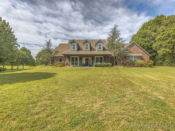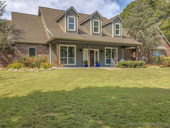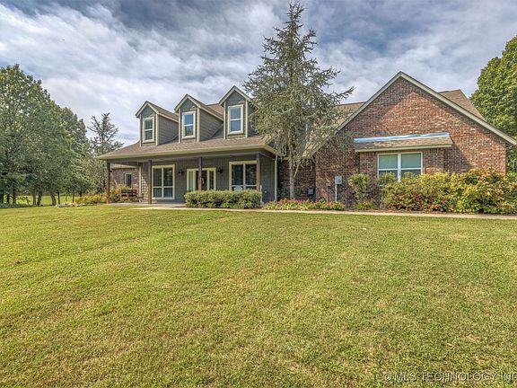 WELCOME HOME to this custom-built full brick beauty tucked away on 10 secluded, park-like acres in the Coweta School District! With 4 bedrooms, 3.5 baths, and over 3,800 sqft (per building permit), there’s room for everyone to spread out and enjoy. All bedrooms are conveniently on the main level, including a private master retreat with its own patio entrance, walk-in closet, and relaxing bath. The split floor plan gives the master extra privacy, while the open kitchen with granite counters and stainless appliances flows easily into the living room with a cozy fireplace and tall 9’ ceilings—perfect for family gatherings and holidays. You’ll also find a dining room and home office on the first floor. Upstairs offers even more space with a large game room, storage closets, flex room (currently a home gym), and a handy half bath. Recent updates include brand new luxury vinyl plank flooring, and energy-saving spray foam insulation helps keep utility costs low. Outdoors, enjoy a true Oklahoma lifestyle—relax on the huge covered front porch, entertain under the pergola on the back patio, or admire the professionally landscaped flowerbeds with sprinkler system. The wooded acreage provides privacy, shade, and room to roam, with plenty of cleared space to add a shop, pool, or both. With a 2-car garage, full gutters, and just 10 years young, this well-built home offers the perfect blend of comfort, quality, and country living—while still being just minutes from town.