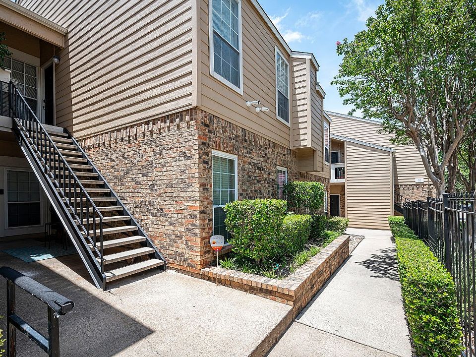 Remodeled condo ready for new owner, everything is nice and fresh! Pretty white kitchen with granite counters and stainless appliances, full sized laundry room, beautiful living room with brick fireplace and added built-ins are great for extra storage! All wood and tile, no carpet! The Updated bathroom has granite counters and a beautiful shower! You will love the cute balcony with a great view of pool! Wonderful central location in North Dallas, so convenient to shopping, restaurants and the tollway! HOA dues include water, sewer and trash bills. Truly move in ready with washer, dryer and refrigerator included.