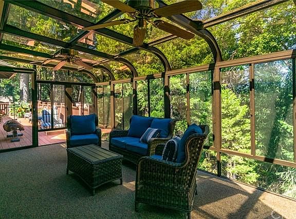 Beautiful, custom home located in a private setting and situated on nearly 1 acre! This well-maintained 3 bedroom, 2 bathroom home offers a desirable split floor plan, vaulted ceilings in the great room, a cozy pellet stove, and large picture windows with views of the outdoors. The spacious kitchen is perfect for any chef with granite counters, a large center island with a breakfast bar, loads of cabinet space and a breakfast nook. The master suite offers a sliding glass door to a private side of the deck and an en-suite bathroom with dual sinks and tile countertops. Other wonderful amenities include an individual laundry room, 2 living rooms, separate dining room, inviting sunroom with new UV protective carpeting, skylights, ceiling fans throughout, newer roof, newer HVAC system, newer water heater and much more! Once outside, enjoy the ease of a semi-circle driveway, manicured landscaping and peaceful views while relaxing on the large, trek decking. Bonus rooms/tons of storage under the house. Don't miss out on this out on this impressive, move-in ready home!