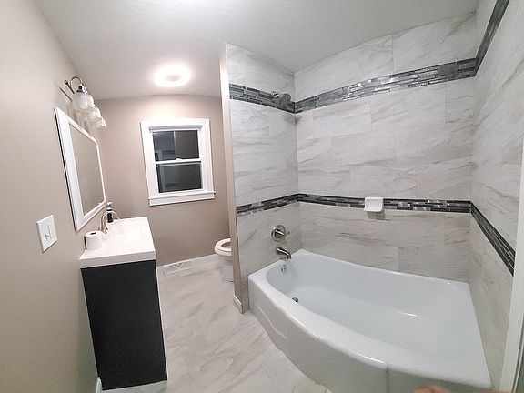 This home just finished a total renovation. Things like a new front porch, entry sidewalk, kitchen cabinets, Granite countertops, bathroom cabinets, new tile, wood floors, carpet, windows doors, trim and many other added features.