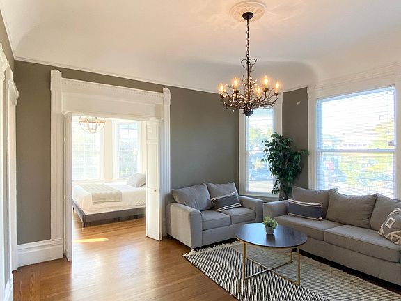 1890's Victorian charm meets modern day comfort in this spacious 1150 sq ft, 3bdrm, 2 full bath flat. Enjoy everything the Bay Area has to offer from your private, modern retreat on the charming island of Alameda. The space has been completely updated and is conveniently located near Alameda's Crown Beach, San Francisco, Oakland, restaurants and shopping. OPEN HOUSE: SATURDAY, 8/16, 1-3P The apartment is available starting early-mid Sept. Trash, sewer, included, tenant responsible for electricity, gas, water * The apartment is on the second floor of a classic Alameda Victorian home * There are two units below and one unit above this one and in an older building like this sound can travel * The original oak hardwood floors were recently refinished. We do ask that tenants use rugs in the main living areas and bedrooms to protect the floors and also for sound for the tenants below. * Apartment is rented *unfurnished* * The apartment shares a small, fenced, private yard with the other units * The apartment has been recently remodeled. The exterior is next up for repainting which will be completed soon * There is working gas fireplace that is the heat source for the living room and kitchen * Each bedroom has electric wall heaters * The back bathroom has a beautiful claw-foot tub * The bedroom with the circular light fixture has a glass-paned door that leads to the entry-way and folding doors that lead to the living room. The doors close well but they are folding doors and sound travels through them so some may feel there's less privacy in this bedroom * One off-street parking spot is available for $30/ month An app-operated laundry washer and dryer is available on-site. Please be aware of street sweeping days and times, these are posted and vary by side of street. Other tenants in the units may have pets. Applications are accepted on a "First come, first serve basis". We support and comply with all local, state and federal Fair Housing laws and are an equal opportunity housing provider. Please note, several applications may be processed simultaneously and the first fully qualified applicant will be accepted. 12-months, owner pays sewer, trash, tenant pays water, gas, electricity. No smoking allowed, dogs allowed with references and pet fee.