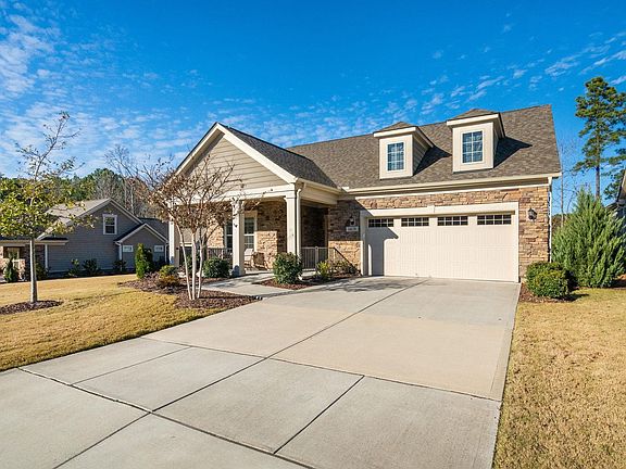 Low-maintenance, prime corner lot ranch home in desirable West Cary 55+ community. Open floor plan centers around private garden, flagstone patio & fenced yard. Scenic lot with views of woods & pond w/ water feature. Kitchen w/ quartz counters, large island, tile backsplash & sst appls. Ceramic tile floors through main living areas, gas fireplace, tray ceilings, painted garage floor & more. Ample owner's suite w/ windowed sitting rm, walk-in closet, tile shower & double vanity. Split bedroom layout w/ guest bath. This home has been meticulously maintained & sits on a coveted lot! Enjoy community clubhouse, gym & pool.
