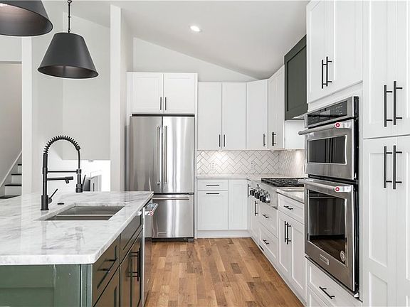 - Kitchen Features: Breakfast Bar, Eat-in Kitchen, View to Family Room, Kitchen Island, Cabinets White