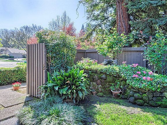 Delightful Robert Powell 'Signature' Courtyard Patio home on Premium corner location. Light, Bright & Airy Single-story plan w/Stunning views of beautifully manicured garden patio situated serenely below towering, majestic Redwood. Corian kitchen counters, Oak cabinets, unique sun-splashed breakfast nook. Hi-vaulted 16' ceilings dining & entry, Hardwood flooring, Recessed lighting, 2 Solatubes. 2-Car Attached garage, w/pull-down attic access stairs. PG&E natural gas line next door.Nepenthe HOA (Homeowner's Association) amenities include main Clubhouse w/state-of-the-art fitness center & WiFi, two (2) satellite Cabanas, two (2) spas, four (4) swimming pools and eight (8) tennis courts. HOA provides on-going exterior home maintenance including Roof repair & replacement, Wood siding & trim, Paint, Patio fences, Gates, Rain gutters, Structural fire/hazard insurance & Flood coverage. Located just 10 minutes from Downtown, Campus Commons is adjacent to one of Sacramento's premier shopping & dining districts, medical & professional offices, the Am. River Parkway, Bike Trail & CSUS, and Sierra Oaks Elementary School (Public K-8).