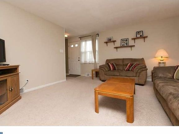 Nestled away on a quiet, low-traffic street, this 3 bedroom, 1.5 bathroom Swarthmore twin boasts a finished basement, large grassy yard with a covered porch, and private driveway parking! Enter into a home with hardwood floors and neutral carpeting throughout. A large, bright living room leads the way through the dining room and into a newly, rehabbed kitchen with granite counters, subway tile backsplash, and classic white cabinets with ample room for storage. Upstairs you'll find three sizable bedrooms, including a large master bedroom with plenty of closet space, and an updated, fully-tiled,bathroom. Downstairs, a powder room and a fully-finished basement with bar offer endless possibilities for entertaining. A large, covered wooden deck looks out over a rolling lawn and makes the ideal setting for summer barbecues and dining al fresco. With a new hot water heater, newly-installed driveway and gutters, central air, and convenient location near the town of Swarthmore, I-95 and the Blue Route, this is the perfect place to call your own!