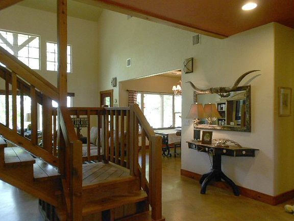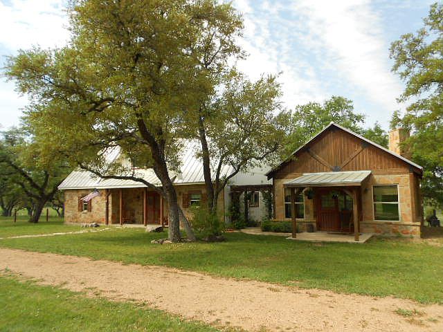This well cared for 3100 sq ft 2008 custom home sits on 30 cedar clear lightly grazed acres. The property offers immediate enjoyment with road work; brush control & improvements all completed. Home features include high ceilings with beams running throughout the home; stained concrete floors; hand troweled walls; custom cabinets from Fredericksburg. Kitchen Aid stainless appliances, water softener, trash compactor, master suite down with 2 bedrooms and loft upstairs, wood burning stove in grand living room, private office under stairs, metal roof, lst and 2nd floor exterior covered balconies. AGENT REMARKS: Exterior features:30x40 metal barn w/ rustic apartment(520 sq ft)heavy duty storage racks.100% goat fenced. Adjacent to main home through a breezeway is an entertaining casita w/ stone FP &wet bar. The adjacent holding pens are all fenced w/ cedar posts that surround the main ranch house. Main ranch house area has a stone pad & outside fire pit/BBQ that allows for entertaining. 1400 gallon cistern.