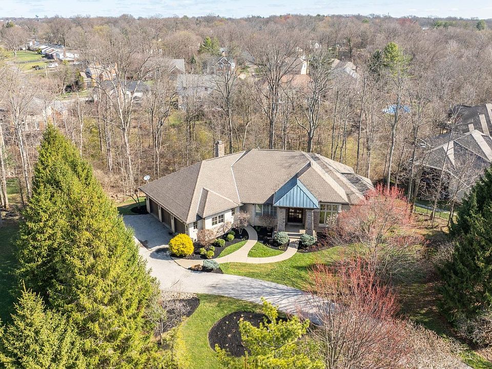 You have just found your own 'private oasis' - original Christopher Robin Homes builder residence - strategically positioned on a private wooded lot, bordering a babbling stream. The details in this coveted ranch are instantly evident - the open floor plan, private and picturesque views in every direction, beamed ceilings, beech hardwood floors, birch kitchen cabinetry, luxurious primary suite with custom shower & soaking tub, custom finished lower level with media room and wet bar. Enjoy Spring/Fall mornings with coffee on the covered deck, next to the fireplace - and Winter nights, snuggled up in the home theater with your favorite movie. Flex spaces offer options for 1st floor office, lower level recreation room/study/5th bedroom potential. Oversize 3-car garage, with full stairway to lower level. All located in one of Anderson Township's 'hidden gem' neighborhoods!