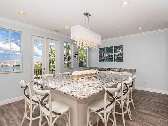 Beautifully remodeled Harbour Island townhome. As you enter you will be greeted on the foyer adorned with a glamorous chandelier. This exquisite home boast a luxurious custom kitchen with exotic granite counter tops, stainless steel appliances, and a massive island that seats 12-14, perfect for gatherings with family and friends. The spacious living room adjacent to the kitchen has a beautiful half bath with beautiful lighting and a linen closet. The bottom floor is the perfect place for guest to retreat with its custom Murphy's bed and half bath. In addition this room seconds as a home office with custom built in desk and bookshelves. Step onto your back patio and enjoy the view as the cruise ships pass by on the water. On the top floor you will find three bedrooms. Enjoy the spacious master bedroom with views of the channel and custom walk in closet. The master bath has a spa tub, double vanity, and separate shower.