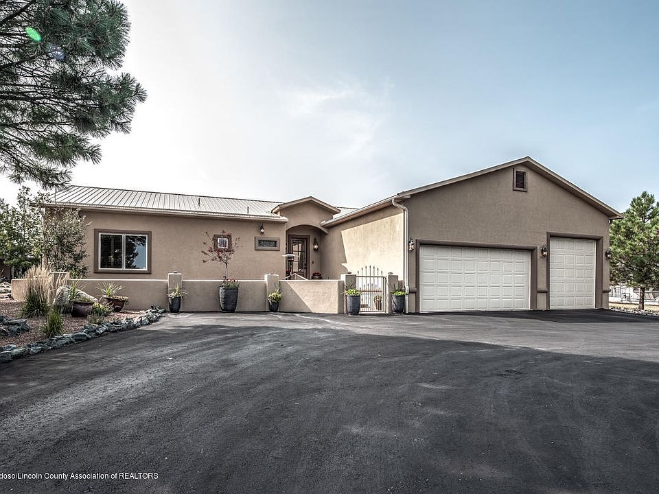 Very nice, furnished, one level home with stained grade trim & crown moldings throughout. Stucco exterior with metal roof. Plantation shutters, 3 BR, 3 Bath, Large 3 car garage, paved driveway, front courtyard, fully xeriscaped, with drippers on all plants. Large back, covered patio. with TV, Stainless appliances, quartzite tops throughout, wood floors in LR, kitchen & Hall. Central heat and air. Large master closet and walk in guest bedroom closets. Golf Membership! Low maintenance home in excellent condition