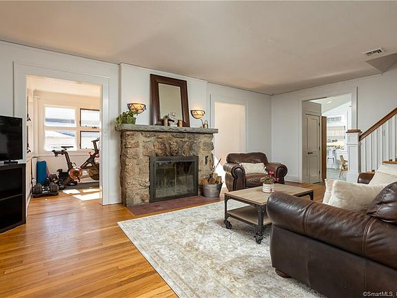 Prepare to be instantly charmed by this expanded Dutch Colonial It's set back from the street behind a stone wall on a large corner property featuring a private fenced backyard w firepit outside and lg family room inside - inviting spaces for everyone to gather in. Formal living room with wood burning stone fireplace is flanked by the light-filled sunroom - perfect spot for morning coffee, home office or workout space - and by the comfortable formal dining room. Living and entertaining are a breeze 'cause the house has the open concept design for today. Bright, updated kitchen features granite countertops, up-to-date appliances and pretty bay window with property views; the kitchen is open to the over-sized family room with radiant heated floors, walls of windows, vaulted ceiling and a full bath. Upstairs, there are 3-bedrooms w hardwood flrs and full bath. The house has been freshly painted and offers central air, hardwood floors, and loads of new windows. The fenced-in backyard, complete with large shed, provides great space to play, garden and relax by the firepit, while detached 2-car garage provides additional loft storage. Close to Merritt, shopping, the Stamford Nature Center and so much more. Come fall in love today