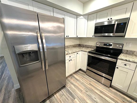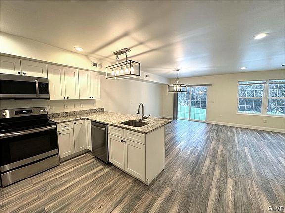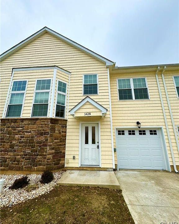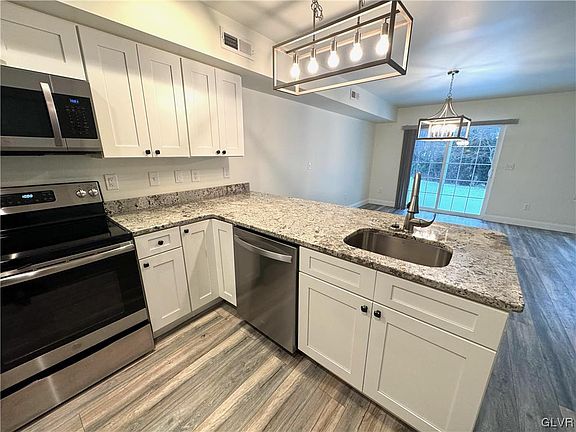 Townhouse Style Condo home! The entry into the foyer is flanked with storage under the stairs and a half bathroom. Entering in the living space you will be amazed at the open concept layout. The high key white cabinetry is completed with granite counters, under mount sink, stainless steel appliances and modern fresh lighting fixtures. The dining/living room area can be configured anyway you like. It is a blank canvas to design as you like. Right out back is your private concrete patio with privacy fencing on the side and a view of the open wooded space behind the community. Ascend the stairs full of light with a vaulted ceiling to find the master suite. The master bedroom is completed with a walk in closet and an en suite bathroom. Check out the curated selection of tile in the master bathroom and the double bowl vanity. Down the hall find two more spacious bedrooms, another full bathroom with fresh modern selections and the 2nd floor laundry. This property is served by public water & sewer, an electric heat pump with central air and electric hot water heat. The best of maintenance free living and a super convenient location for commuters to Routes 78 and 412. We have a great lender ready to lend at 6.25% for a 5/6 ARM loan with 100% financing. There is nothing to do but move in! The low condo fee covers exterior maintenance, lawn care, snow and garbage.