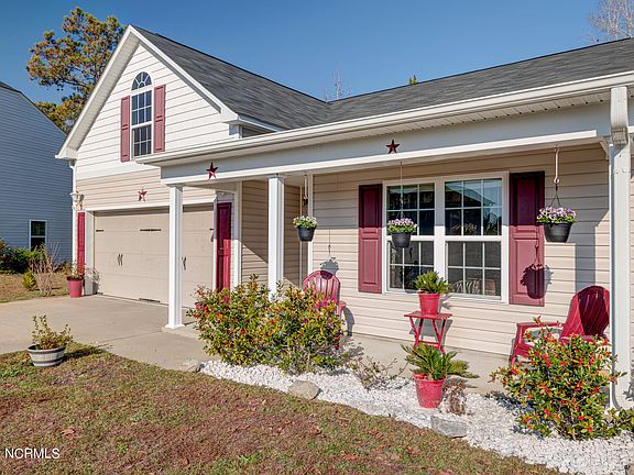 Welcome to Judith Dr. where you & your guests will be greeted by a covered front porch, the quintessential southern staple. Grab your favorite beverage and have a seat, relax, read a book or chat with the neighbors. This desirable open concept floor plan has just been updated with LVP flooring throughout the entire main level. The wide plank flooring is both durable and beautiful. At the front of the home there are two bedrooms and a hall bath for family or guests The Owners suite is located at the back of the home for added privacy. The bedroom is enhanced with a vaulted ceiling, an en suite bath with separate soaking tub, shower, and walk in closet. The open concept living area is great for families and entertaining. Everyone is included no matter where they are or what is going on. The ''open sightlines'' make keeping an eye on kids and pets a breeze. Imagine all the great memories you'll make hosting family and friends for dinners, game and movie nights. There is a Bonus room upstairs with brand new neutral carpeting that could be used as a 4th bedroom, home office, man cave, craft room etc. The mature hardwood trees in the backyard offer both shade and privacy for relaxing at the end of the day. This home also offers ceiling fans in all the bedrooms and living room, thermal door in front to let the sunshine in, medicine cabinets in both bathrooms, an irrigation system in the front and back, garage door opener, and gutters. The New South Bridge HOA offers a clubhouse, community pool, 9 hole golf course and a RV/Boat parking lot! This home is located just minutes from local beaches, Historic Southport w/ its quaint shops and restaurants, Sunset Harbor public boat launch and so much more! Welcome Home! Lender is offering $2000 in closing cost credit if a buyer uses them as the lender for this purchase.