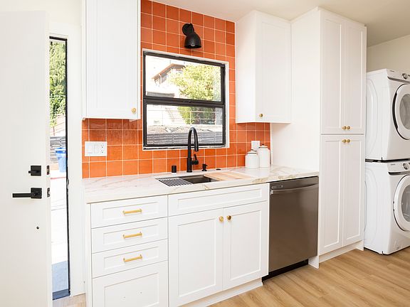 A fully remodeled 1920s Spanish bungalow unit with in unit laundry that gives thought to design. 1428 Micheltorena is not just a place to live, but offers a sense of community in the middle of one of LA's hottest neighborhoods. Moments from Silverlake's best retail and dining, these side by side duplex units offer a single family home feel. Significant renovations completed in 2024 with a design sensibility that retains the essential character-defining features of early 20th century Los Angeles living. Includes all new oak colored flooring, coral tile backsplash, gold ribboned counters and warm lighting fixtures. The spacious kitchen has all new appliances and is ideal for the chef in you, with a gas stove, farm sink, dishwasher and large capacity front loading washer & dryer. Enter the courtyard through controlled access gates and directly into your home that has both a front and rear door. The partially opened kitchen has countertop seating, and is a good work or dining spot. Cabinets include floor to ceiling pantry for storage and bedroom closets are double hung for greater wardrobe capacity. Enjoy cooling and heating by a remote controlled wall mounted mini split, and the comfort of everything being new. A petite, but bright unit that has no one above or below you and sharing only one common wall. Street parking only.