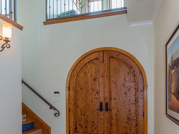 Classy Spanish style hacienda on two acres with horse set up. Home has 4 bedrooms plus an office and 4 bathrooms, tile roof, Mexican paver tile floors, two gas fireplaces, huge kitchen with two center islands, Pella windows and doors. Master suite is located downstairs with the other bedrooms upstairs, one of which has it's own bath and the other two share and jack and jill bath. Upstairs balcony access from the bedrooms provides a scenic overview of the back of the property as well as the foothills and Sierras. There is an oversized three car garage attached to the house by a breezeway. The horse set up is an added bonus with riding arena, pasture and a three stall barn with tack room and wash rack. Quality is evident everywhere. Call your agent for an appointment to view this desirable property.